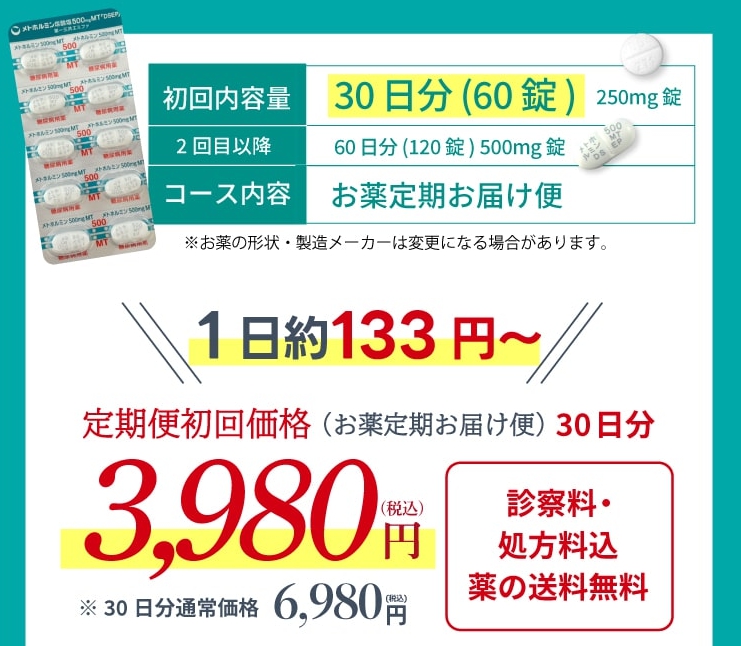 メトホルミンは初月3,980円!